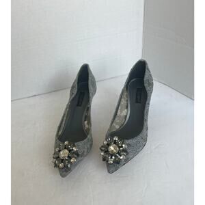 Dolce & Gabbana Taormina Lace Crystal Embellished Pointy Toe Low Heel Pumps 6.5