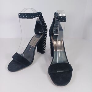 Dolce Vita Size 8 HENDRIX Black Suede Ankle Strap 4" Block Heel Stud Sandals