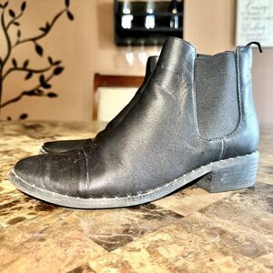 Dolce Vita Black Leather Block Heel Studded Chelsea Boot Booties