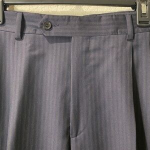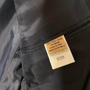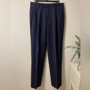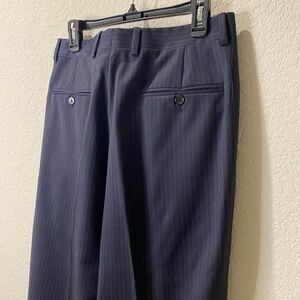 Excellent condition! A vintage classic navy blue pinstripe suit. Jacket and pants are included. Beautifully made in Italy and 100%Wool.