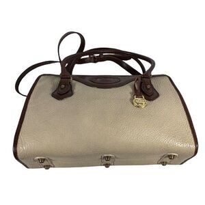 Dooney Bourke All Weather Leather Bone Brown Satchel Handbag Shoulder Bag Purse