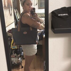 Dooney & Bourke Dark Blue Tote with Tan Straps