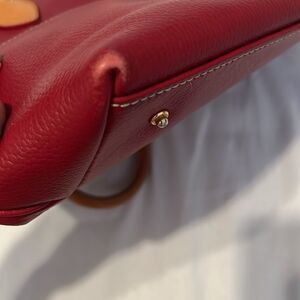 Dooney & Bourke Redish Leather Satchel with Tan Straps and Zipper Pulls EUC