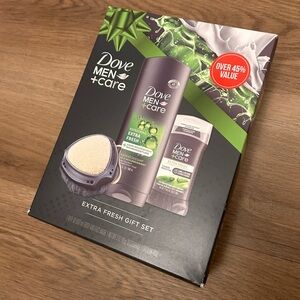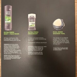 Dove Face + Body Wash, Dove Antiperspirant, Refreshing Extra Fresh Scent, Dove Active Clean Dual-Sided Shower Tool, Gifts for Men (3 Piece Set)