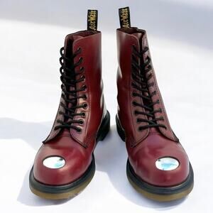 Dr. Doc Martens Maine 6.5 Exposed Steel Toe Cherry Red Smooth Leather Boots UK4