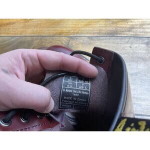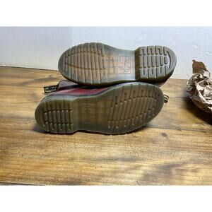 The Dr. Martens Newton 1460 Air Wair Boot in Cherry Leather is a stylish and iconic boot that exudes a rugged and edgy vibe. With a solid red color and lace-up closure, these boots feature a comfortable leather upper and cushioned synthetic insole for all-day wear. The Dr. Martens brand and classic combat style make these boots a versatile choice for both men and women, perfect for those who appreciate the motorcycle and grunge themes. Whether you're a fan of vintage footwear or looking for a sturdy and durable option, these boots are sure to make a statement in any wardrobe.pre owned good condition we ship fast measurements are in the pictures
