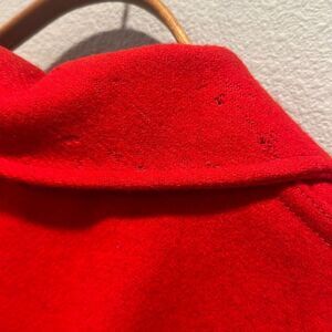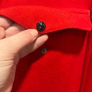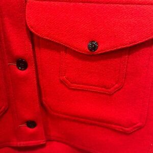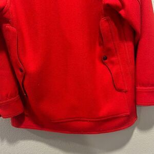 This vintage 1960s Filson women's scarlet Mackinaw cruiser is a stylish addition to any wardrobe. Made with high-quality wool, this pea coat is perfect for the colder weather. The coat is union-made and comes in a size 14, with a red color that is sure to turn heads.