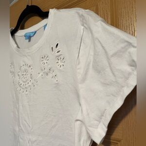 Draper James RSVP White Cut Out Tee XL Basic Cotton Short Sleeve Whimsy Modern