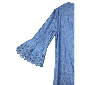 Draper James Womens Size 10 Denim Chambray Dress Ruffle Front Bell Sleeve