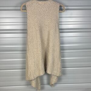 The Dreamers Cream Cardigan showcases a chic asymmetrical design with a relaxed, sleeveless style, making it an ideal layering piece. Its open neckline and soft knit material provide a versatile and comfortable fit, perfect for any occasion.