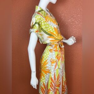 Embrace a vibrant look with this tropical print maxi dress. Featuring a blend of orange and green hues, it's perfect for sunny days dress in good condition.