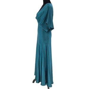Dress Forum Womens Bat Wing Sleeve Satin Maxi Dress Deep Jasper Size Small NWT