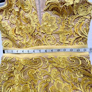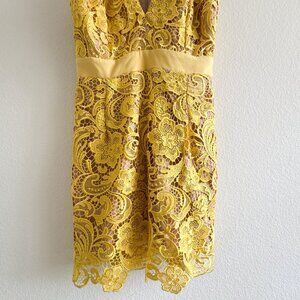 Dress the Population Ava Yellow Lace Mini Dress Large V-Neck Sleeveless Lined