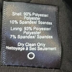 Material: Shell – 90% Polyester, 10% Spandex; Lining – 93% Polyester, 7% Spandex