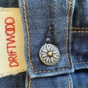 EUC Driftwood distressed jeans. There is floral embroidery at the bottom of each leg. The embroidered flowers a vine are pink, green and red. The button on the waistband has a cute flower on it. Size 30” with a 27” inseam. Approximately a size 10. These will be ankle jeans for most. There is a raw hem.