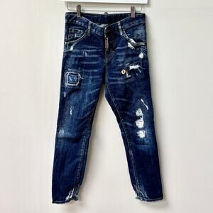 Dsquared 2 Mid Rise Slim Fit Distressed Denim Skinny Jeans Blue Women's Size 38