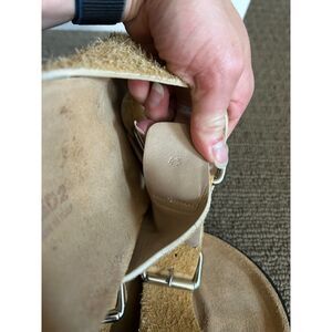 Beige ‘Sonny’ slides from Dsquared2. Made of suede, this pair features an adjustable strap with a silver-tone lbuckle and a black rubber sole. Says Dsquared2 on soles, side of strap and base of soles.
