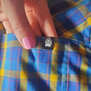 Duluth Trading Company Alaskan Hardgear Midnight Sun Shirt Blue Aster Plaid NWOT