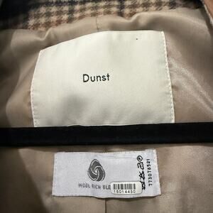 Dunst Tweed Check Jacket in Brown. Women's Size S / Small. Tailored in a classic check tweed with a structured boxy silhouette, this jacket features a collarless neck, long sleeves, a front button closure, and pockets. Fully lined. Wool blend. Great used condition, no notable flaws. Retail $545.