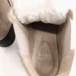 EILEEN FISHER Calm Boots Lace Up Shearling Lamb Fur Bone Tumbled Nubuck Size 7