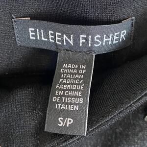 Eileen Fisher slim ankle pants in black. Front panels give a tweed feel. Stretch waist. Size small. Excellent used condition. No flaws detected.