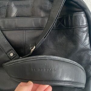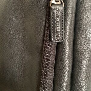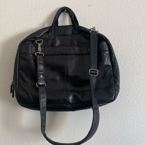 Sleek and stylish black leather men's bag, perfect for everyday use. Durable and versatile for all your essentials. Features a padded laptop compartment. Clean inside and out.