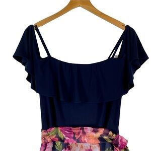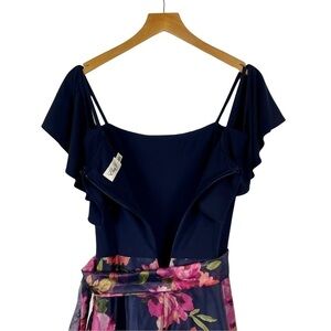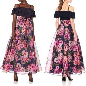 ELIZA J COLD SHOULDER FLORAL ORGANZA MAXI DRESS GOWN