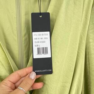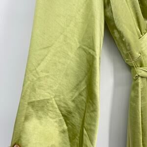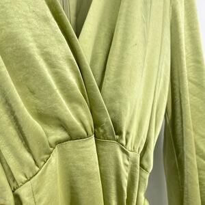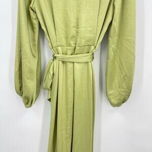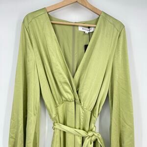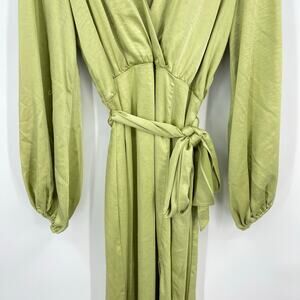 ELLIATT | Kai Maxi Dress in Avocado Green Satin Surplice Balloon Sleeve L