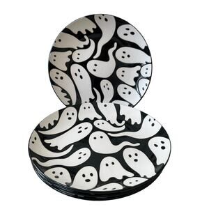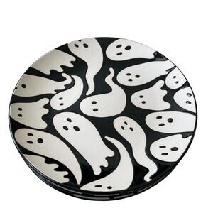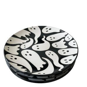 ELUM HOME Spooky Halloween Ghost Appetizer Plates Set of 4 Black & Cream NIB