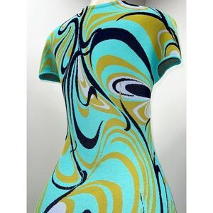 EMILIO PUCCI Turquoise Onde Print Fit & Flare Knit Knee Length Dress Siz…