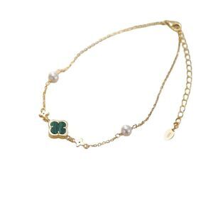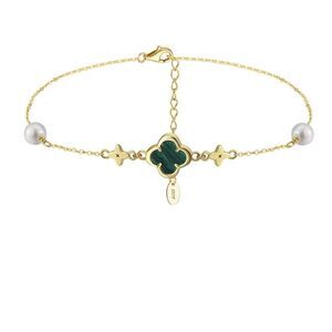 ENA925 14k Over Sterling Silver Malachite Green Anklet