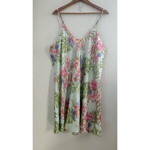 ENCHANTING Women’s Green Hawaiian Floral V-Neck Satin Chemise Nightgown 2X Boho