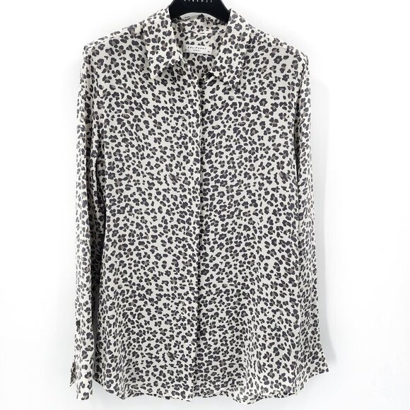 EQUIPMENT Leopard Print Silk Long Sleeve Button Up Blouse
