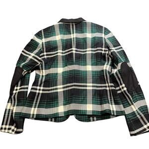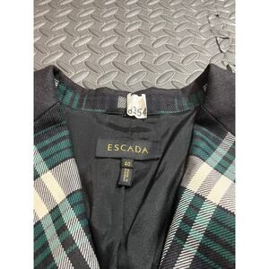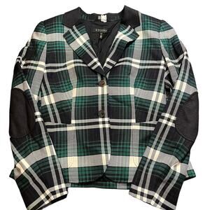ESCADA ELBOW PATCH PLAID WOOL KNIT JACKET BLAZER TARTAN GREEN WOMENS 40 US 10