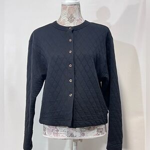 Black quilted crop jacket by ESPRIT, size S.  Top has crew neckline and snap button closure.
