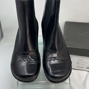 This is a beautiful pair of ESpace Sz 10.5B Lylou New In Box Napa Leather Booties. Side elastic for easy pull on and take off. No slip wedge sole. Beautiful leather exterior and red leather interior. Lightweight and super comfortable.