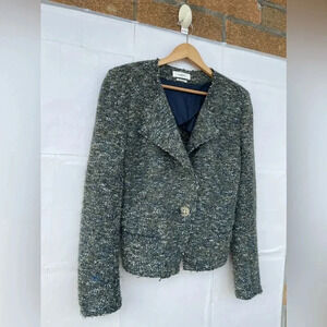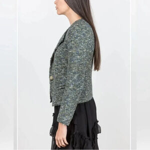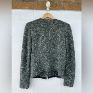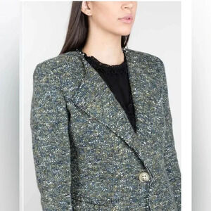 Isabel Marant Etoile Jacket Single button, shorter length. French padded shoulder. Alpaca wool blend colors are green blue tan shades