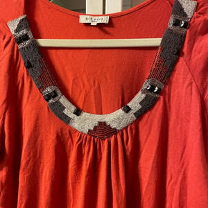 Pre owned excellent condition coral color tee with gorgeous beaded neckline. WOMENS size xl. Super soft modal blend tee.