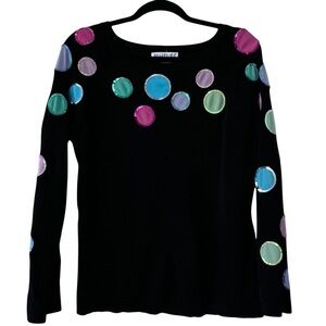 EUC Bellepointe Knit Sweater in Black with Pastel Sequined Detail size Large