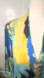EUC Chico's Vibrant Blue and Green Abstract Long Sleeve V-neck Bouse