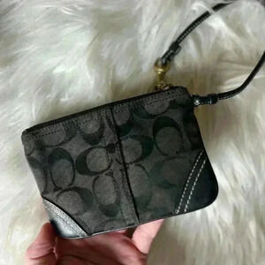 EUC Coach Signature Canvas Logo Zip Closure Wristlet - Black, Leather Corners