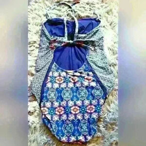 EUC Helen Jon 1 Piece Slimming Swimsuit w/ Blue Geometric Floral Print SZ S