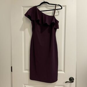 EUC Ralph Lauren Cocktail Dress Embellished Strap Ruffle Aubergine Sz. 4