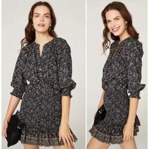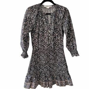 EUC Veronica Beard Karlina Floral 3/4 Sleeve Smocked Button Front Dress- Sz 0