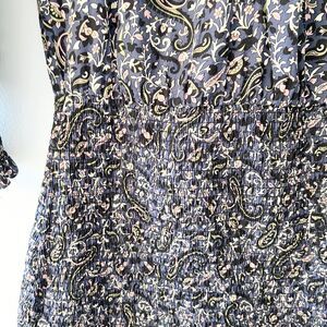 - Swirling paisley highlights the feminine appeal of this flouncy smocked dress