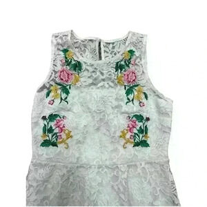 EUC White Lace Sundress With Floral Embroidery Size Small