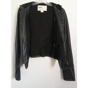EVER Leather Hoodie Jacket NWOT Moto Distressed Black Zip Lined Pockets Small XS