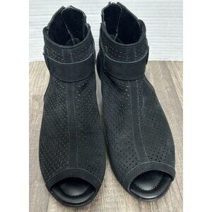 Earth Sandals Intrepid Black Leather Ankle Peep Toe Heels Shoes Womens Size 8.5B