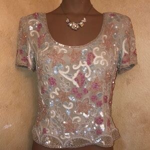 Easter Dream Vtg Adrianna Papell Silk beaded top
