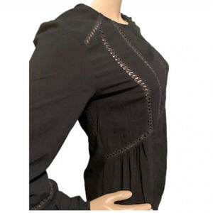 ECRU Isabel Black Bohemian Eyelet Long Sleeve Top Size S